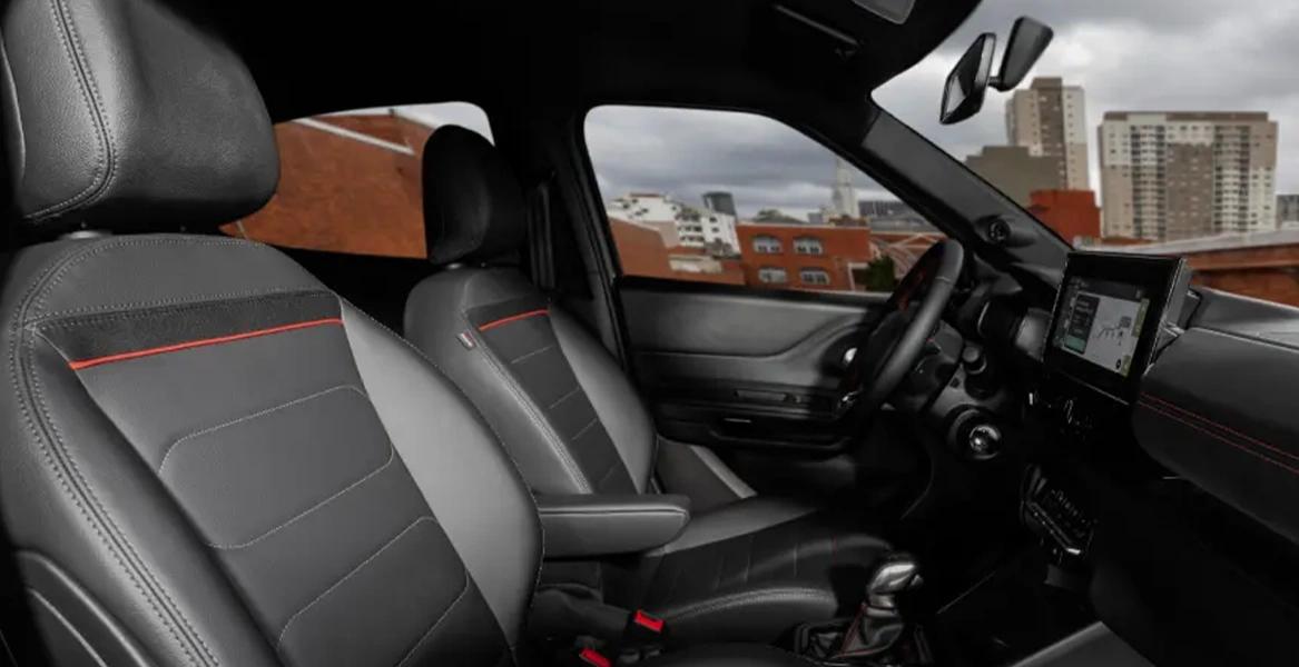 Além do conforto proporcionado pelo apoio de cabeça ajustável que prioriza seu bem-estar, destacamos também o acabamento premium dos bancos em preto com detalhes em vermelho na versão Dark Edition.